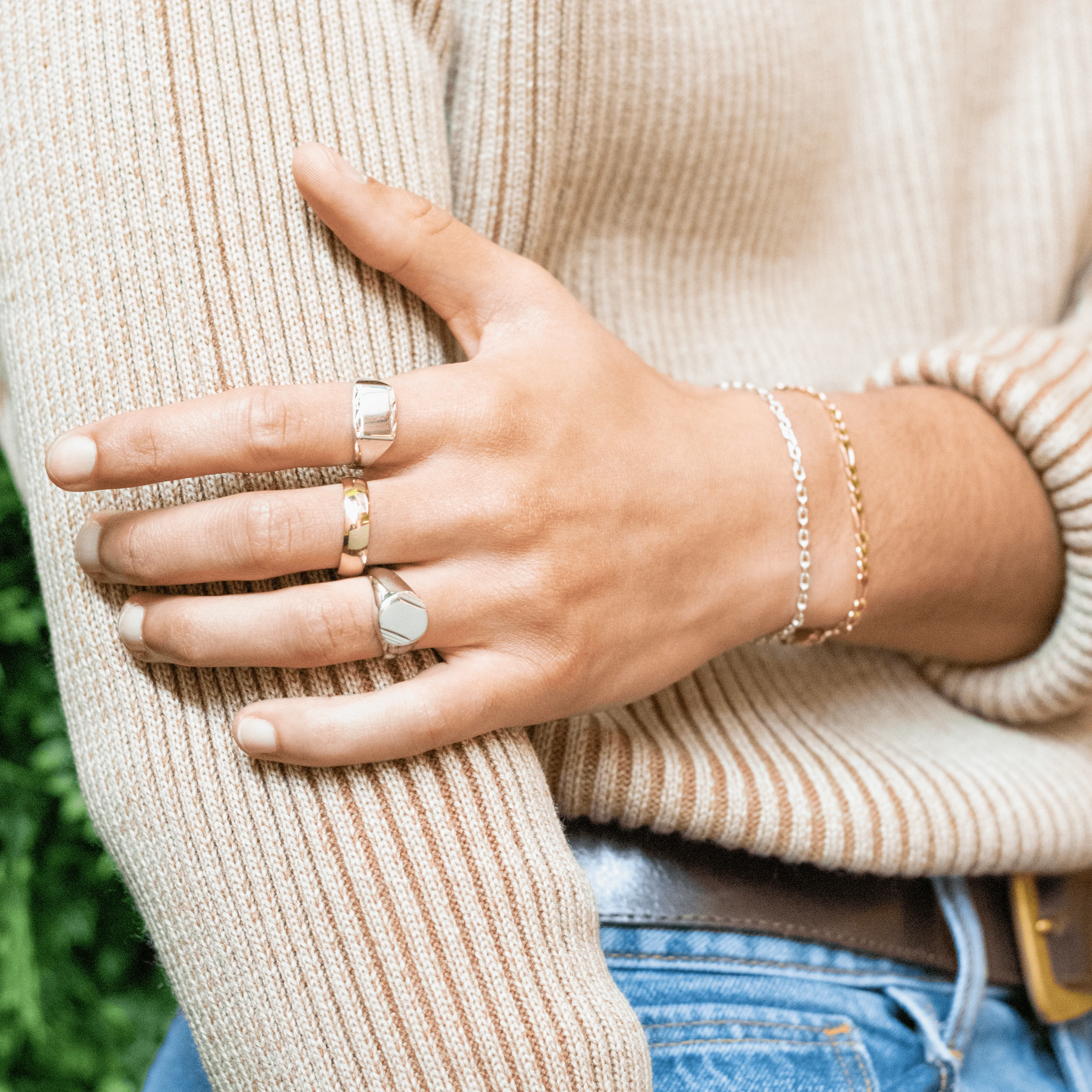 À propos : la chevalière est une bague qui a encore de beaux jours devant elle. Ce modèle mixte, rectangulaire et légèrement gravé sur ses côtés, s'adaptera à tou.te.s grâce à son design universel. Cette bague chevalière en argent rhodié résiste à l'eau et ne ternit pas.