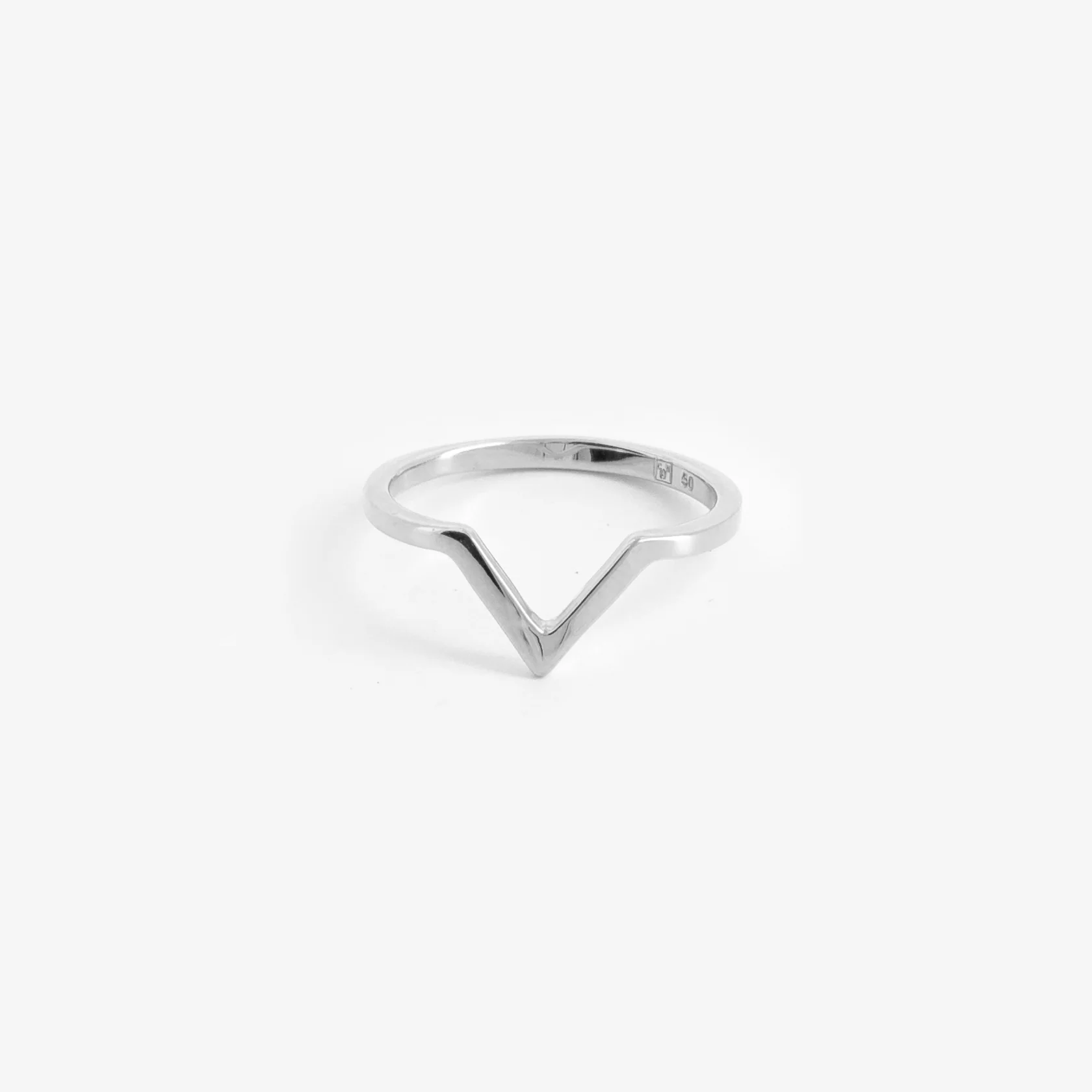 À propos : à tous.tes les adeptes de bagues minimalistes, vous tomberez amoureu.x.ses de ce modèle à tous les coups. Son petit V viendra matcher toutes vos autres bagues en accumulation. En argent rhodié, elle résiste à l'eau et ne ternit pas.