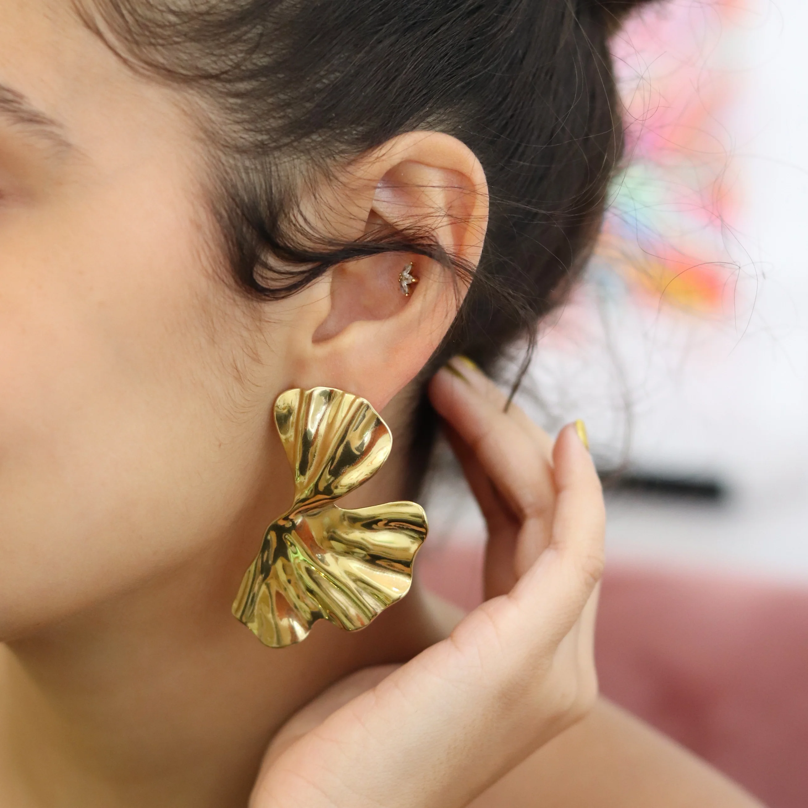 À propos : Affirmez votre style avec nos boucles d’oreilles ginkgo acier inoxydable doré. Leur design sculptural inspiré de feuilles de ginkgo, pour une touche à la fois chic et audacieuse. Légères, résistantes à l’eau et à l’oxydation, elles illuminent le visage et subliment vos tenues du quotidien comme de soirée.