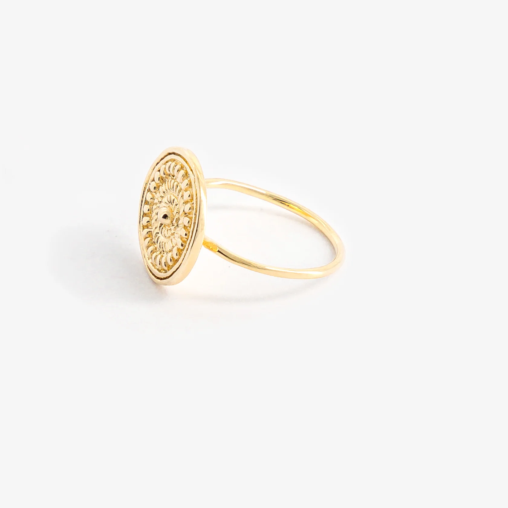 À propos : l'Étincelante se fera une place de choix dans votre coffret à bijoux. Ses rayons, subtilement gravés, entourent un petit zirconium qui scintillera à votre doigt. Cette bague soleil en plaqué or 18 carats résistera à l'eau et ne ternira pas.
