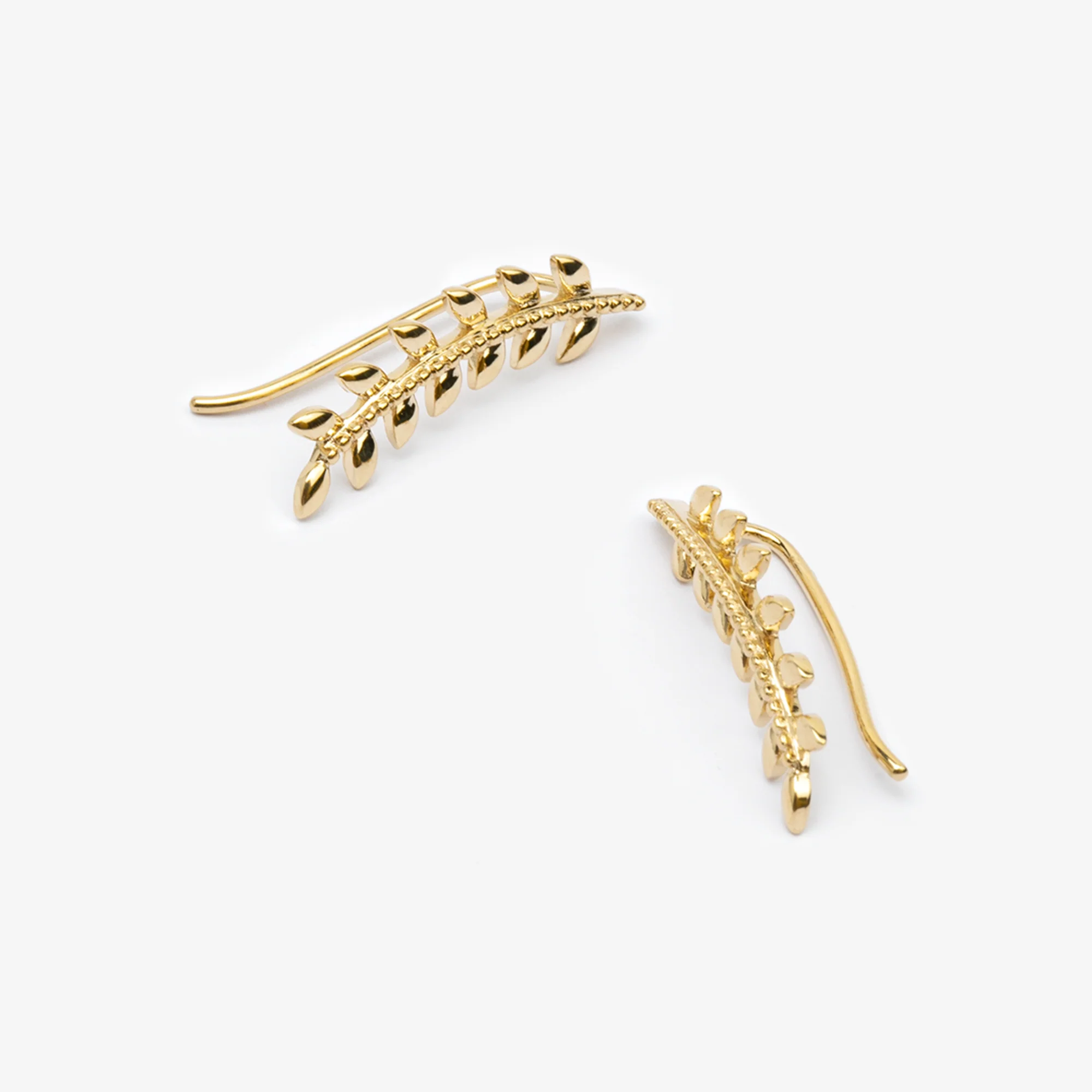 À propos : cette paire de boucles d'oreilles grimpantes en plaqué or 18 carats résiste à l'eau et ne ternit pas. Laissez-vous charmer par le design original de ces feuilles de lauriers qui s'imposeront bientôt comme un incontournable de votre garde robe.